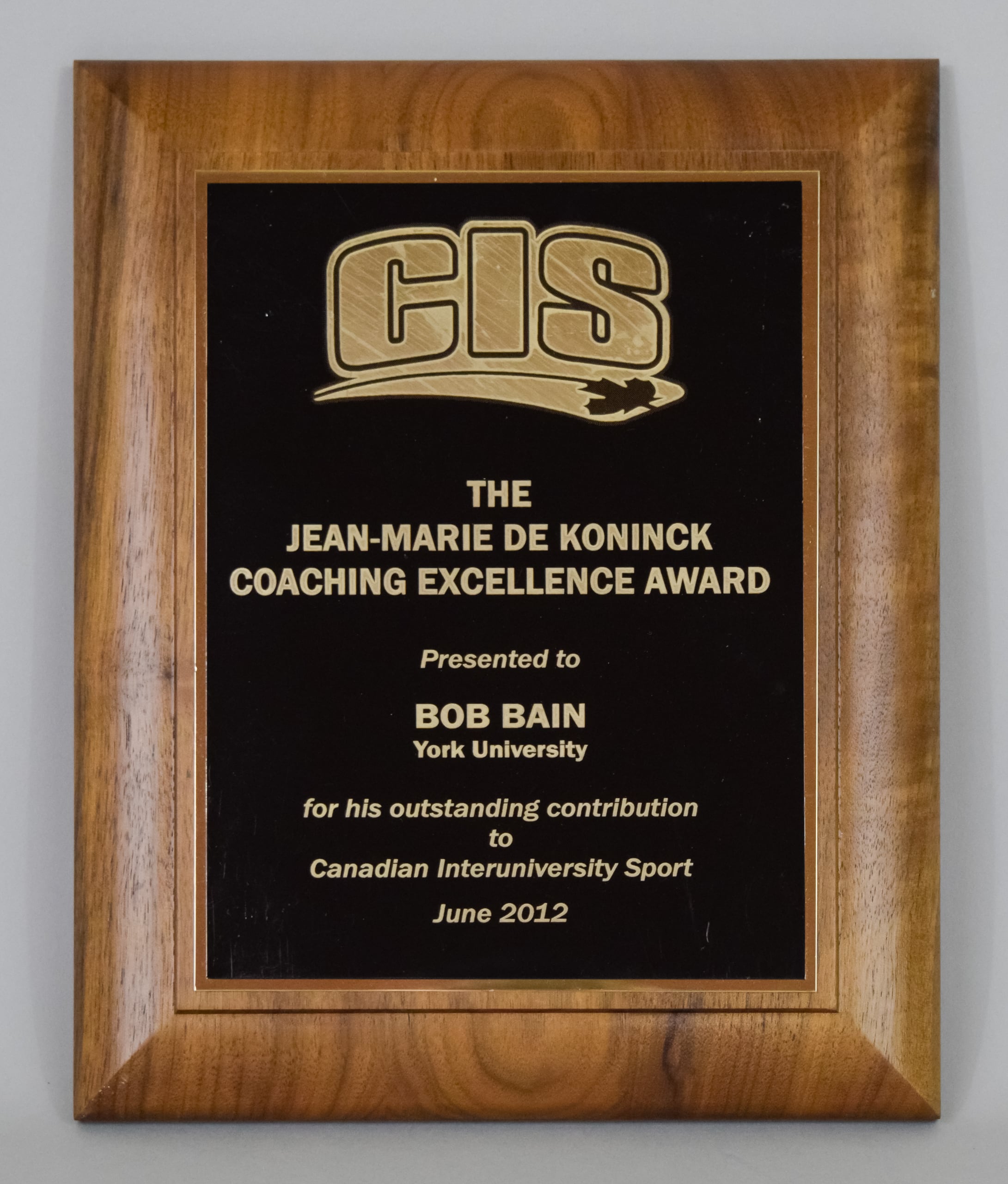 Bob won this CIS The Jean-Marie De Koninck Coaching Excellence Award in 2012 “for outstanding contribution to Canadian Interuniversity Sport.”